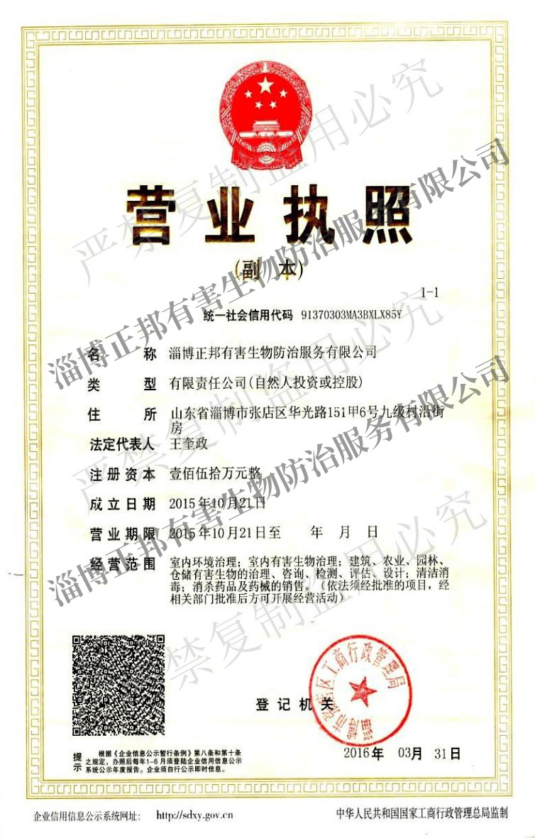 淄博正邦有害生物防治服務(wù)有限公司